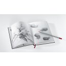 Hahnemühle Nostalgie, der begehrte Klassiker jetzt auch als Buch. Eine Fadenheftung sorgt für haltbare Bindung und gewährleistet eine gute Planlage der Seiten. Skizzen und Zeichnungen lassen sich problemlos auch zweiseitig über den Mittelfalz anlegen. Der feste anthrazitfarbene Einband mit Leinenstruktur macht das Buch strapazierfähig und lässt es angenehm in der Hand liegen. Jedes Buch enthält 40 Blatt/80 Seiten. Das schwere naturweiße Papier mit einem Flächengewicht von 190 g/m² schmeichelt der Hand beim Zeichnen und dem Auge beim Betrachten. Es fasst sich stabil und zugleich schmiegsam an. Seine feine Körnung lässt Stifte fast von selbst über die Oberfläche gleiten. Klar definierte Strichführung und delikate Schraffuren machen von der Architekturskizze bis zur farbintensiven Zeichnung alle Arbeiten möglich. Geeignet für alle Trockentechniken und feuchte Farben. Säurefrei und alterungsbeständig.