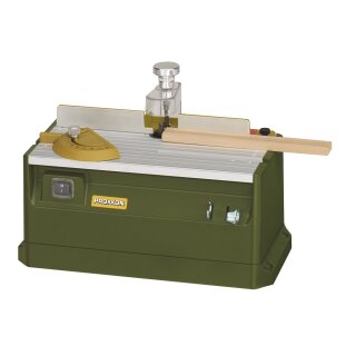 Zum Profilieren, Nuten, Fräsen, Anfasen, Besäumen und Austrennen. Ermöglicht auch exaktes Bearbeiten von Kanten und Längsschnitten (im Modellbau z. B. für Türen, Klappen und Gehäuseteile). Kräftiger, gegen Staub geschützter Motor mit Zahnriemengetriebe. Doppelt kugelgelagerte Welle. Werkzeugaufnahme mit dreifach-geschlitzten Präzisionsspannzangen (je 1 Stück für 2,4 - 3,0 und 3,2 mm gehören dazu). Fräserhöhenverstellung mittels Handrad und auf O justierbarem Skalenring (1U = 1,0, 1 Teilstrich = 0,05 mm). Stabiler Tisch aus Aluminium mit Längs- und Winkelanschlag sowie Frässchutz und Niederhalter. Gehäuse aus ABS. Integrierter Anschluss für Staubabsaugung mit Adapter: passend für jeden Haushalts-Staubsauger. Die MP 400 ist mit einem Absaugkanal und -stutzen ausgerüstet. Für sauberes Arbeiten. Technische Daten: - 220 - 240 V. 100 W. - 50/60 Hz. 25.000/min. - Frästisch 300 x 150 mm. - Gewicht ca. 2,0 kg.