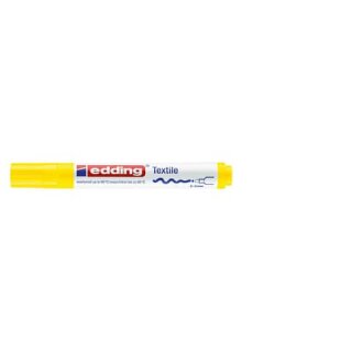 Textilmarker edding 4500. Textilmarker zum Malen, Schreiben, Signieren auf fast allen appreturfreien Textilien. Rundspitze. Lichtbeständige, geruchsneutrale Pigmenttusche auf Wasserbasis. Zum Fixieren ohne Dampf bügeln. Nach dem Fixieren weitgehend waschfest bis 60°C. Weißer Kunststoffschaft. Umsteckbare Kappe in Schreibfarbe. Strichstärke: 2-3 mm. Schreibfarbe: gelb.